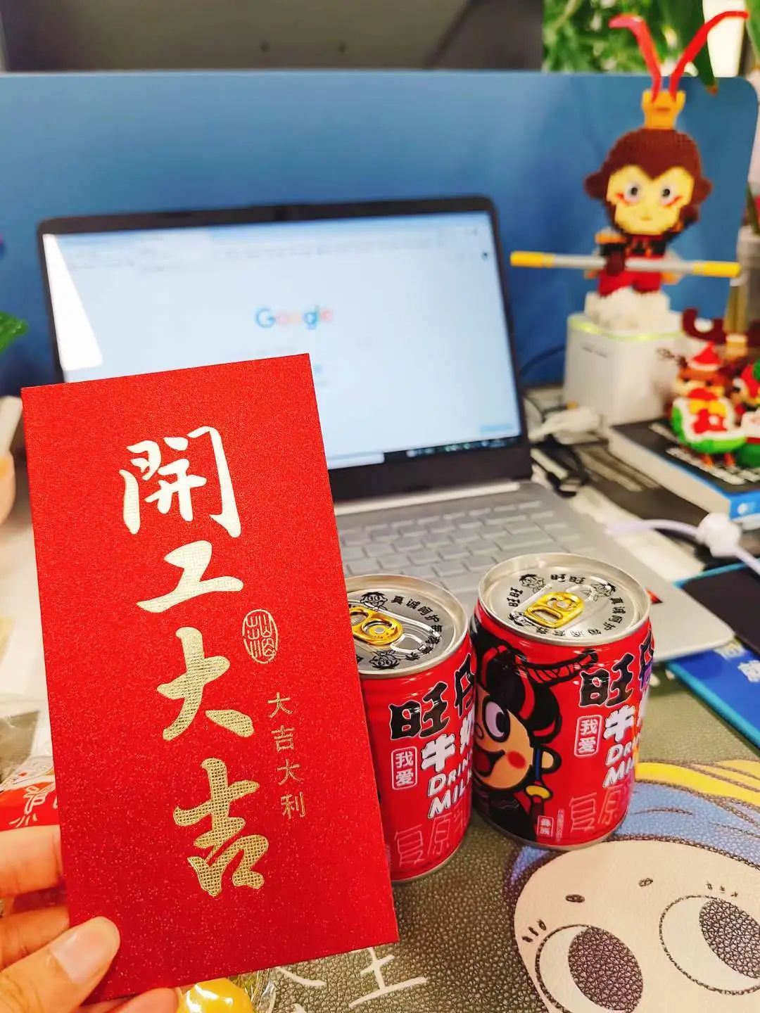 “ 上班啦!祝你:開門見喜!開工大吉!開心順利!開門紅、紅、紅!”