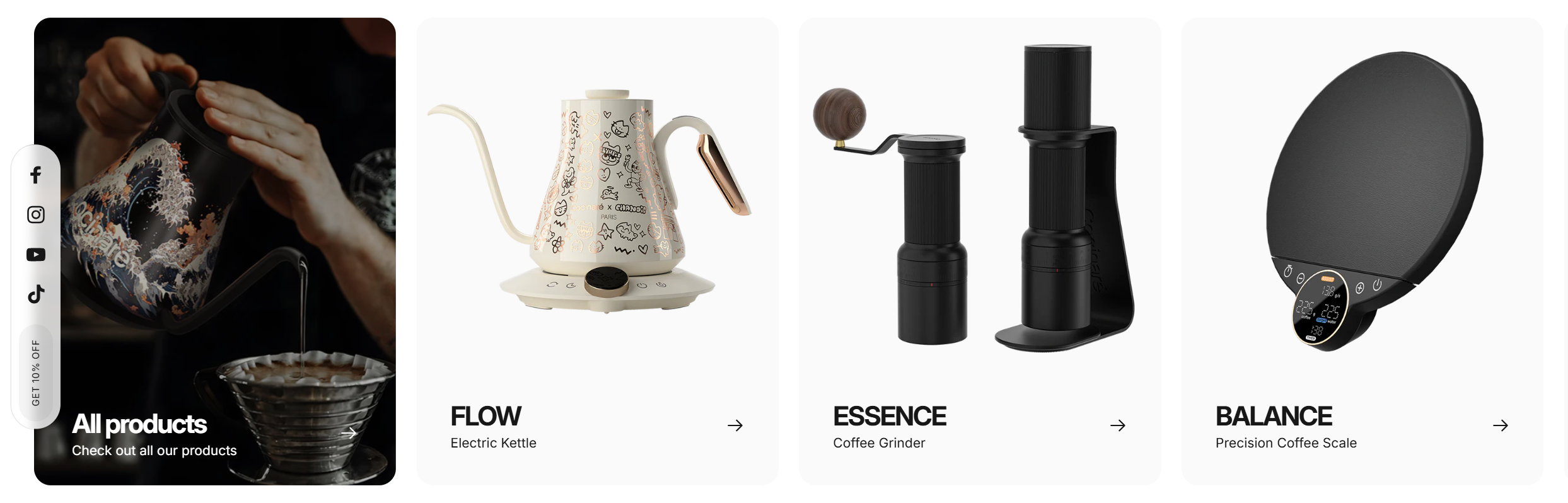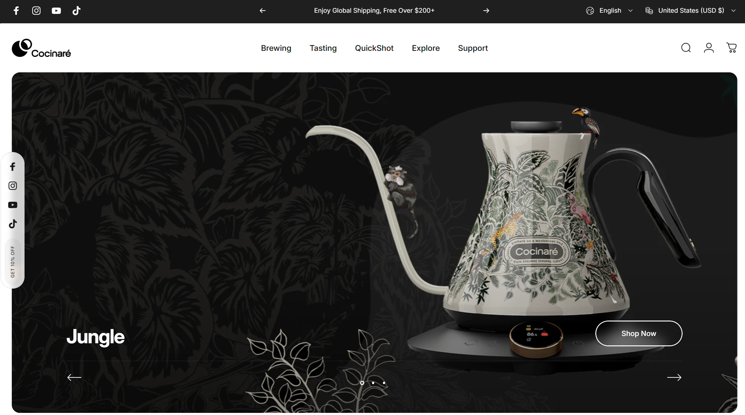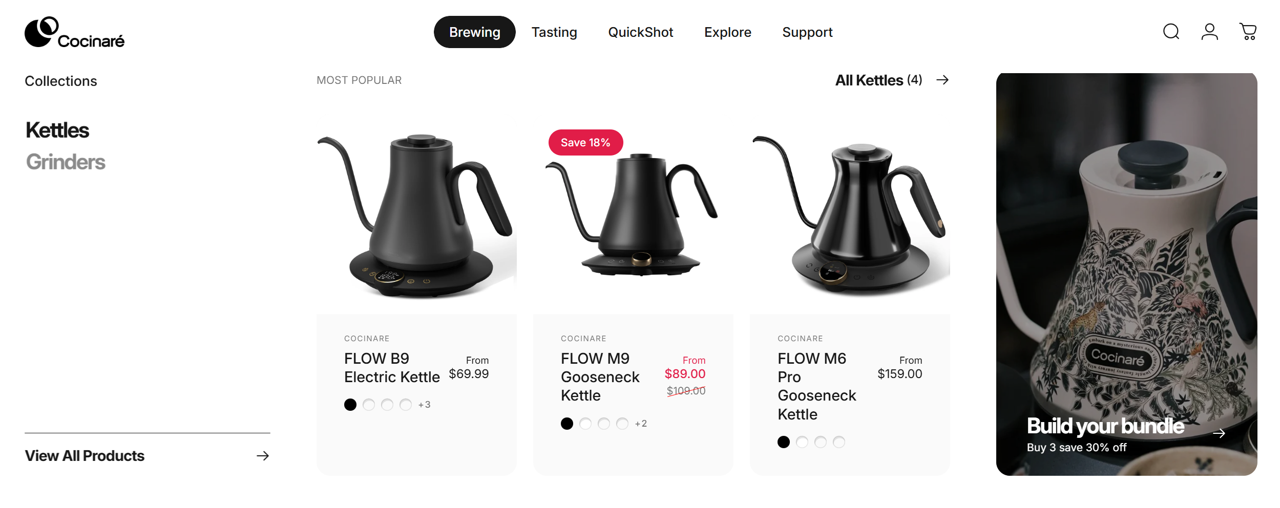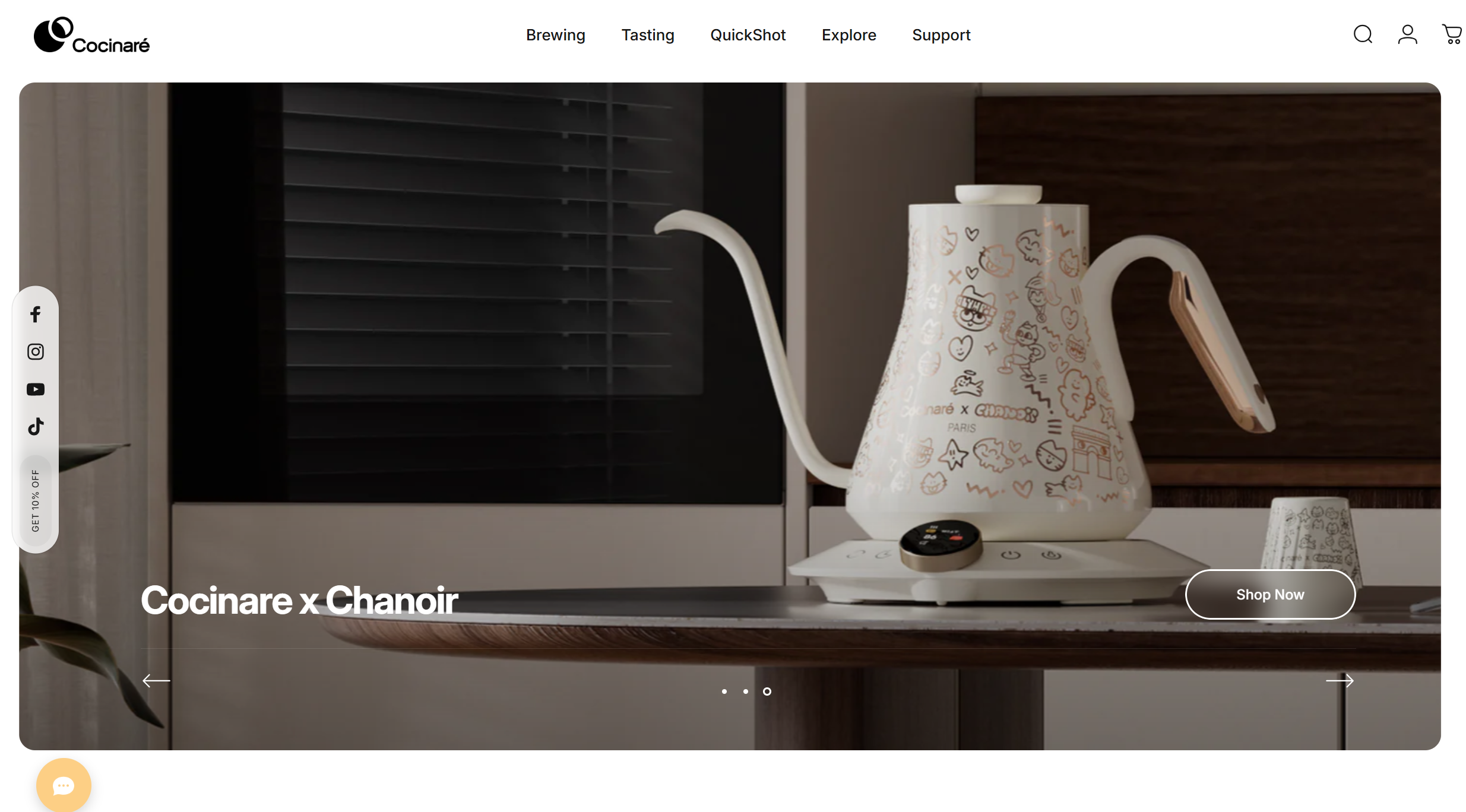 他們打造了一個視覺設(shè)計高級、風(fēng)格統(tǒng)一的網(wǎng)站,用心講述品牌背后的故事和產(chǎn)品研發(fā)的細節(jié)。這樣的獨立站不僅提升了品牌的整體檔次感,也讓用戶能更深入了解 Cocinare,感受到品牌的專業(yè)和用心。