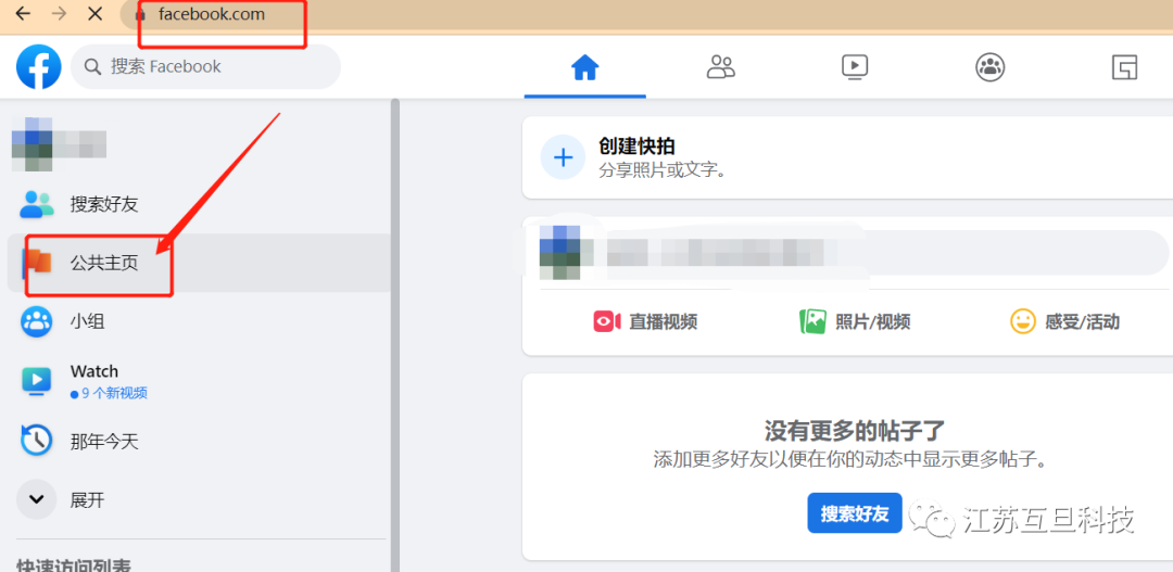 • 在動態(tài)消息左側(cè)菜單中,點(diǎn)擊? 公共主頁。