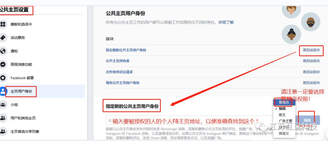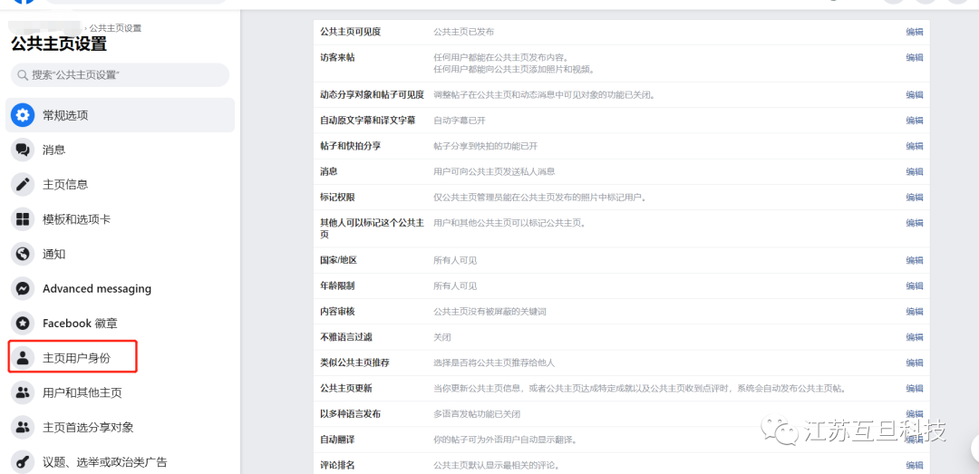 打開公共主頁首頁-左下角點(diǎn)擊【設(shè)置】-【主頁用戶身份】-?【指定新的公共主頁用戶身份】