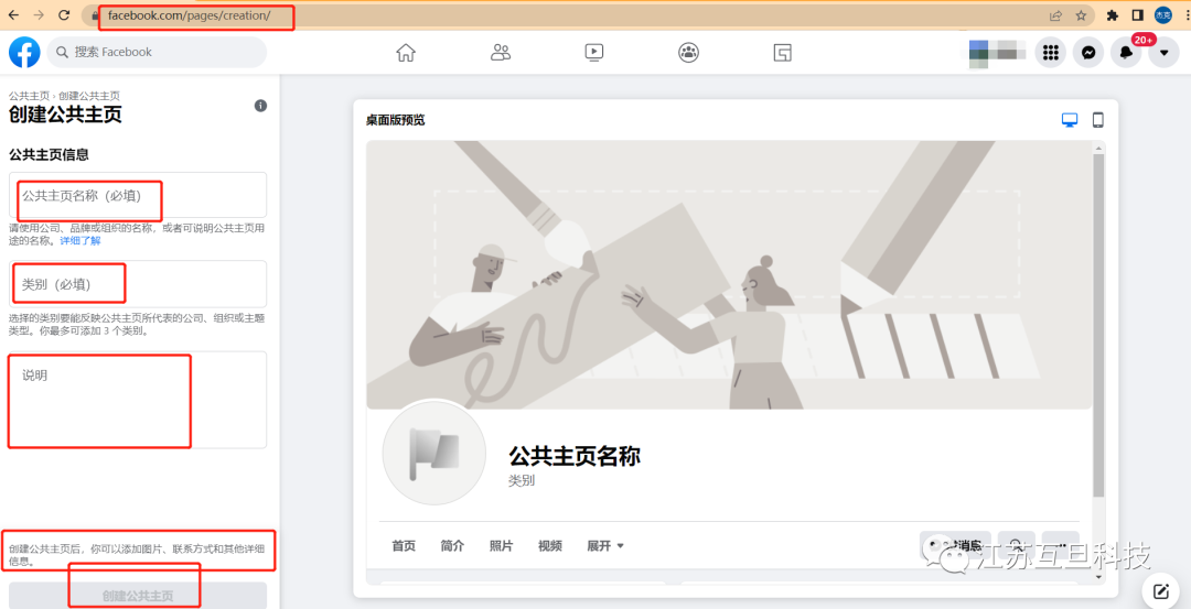 • 點(diǎn)擊創(chuàng)建公共主頁。