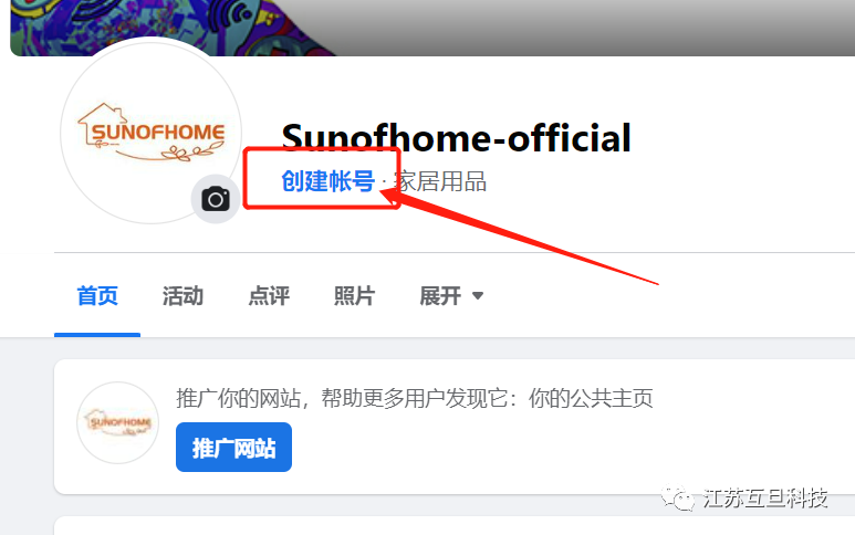 • 點(diǎn)擊公共主頁名稱下方的創(chuàng)建帳號。