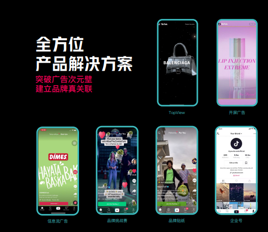 TikTok提供了多種吸引人的廣告形式,以滿足不同廣告主的需求。開屏廣告可以讓品牌在用戶打開應用時以全屏形式展示產品;信息流廣告可以讓品牌在用戶的主頁Feed中無縫地嵌入廣告內容;挑戰賽可以讓品牌發起一個話題,鼓勵用戶錄制視頻參與。